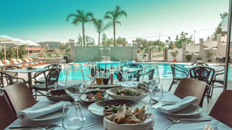 Sea View ligger i Himare och har en säsongsöppen utomhuspool, trädgård, bar och gratis WiFi. Detta boende erbjuder rumsservice och en restaurang. Hotellet har ett privat strandområde. En kontinental frukost serveras dagligen på hotellet.